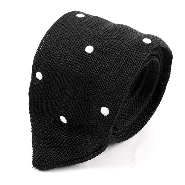 Black Dotted Pointed Silk Knitted Tie 6cm