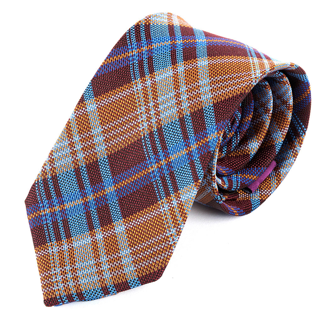 Blue & Brown Rustic Plaid Silk Tie 7cm