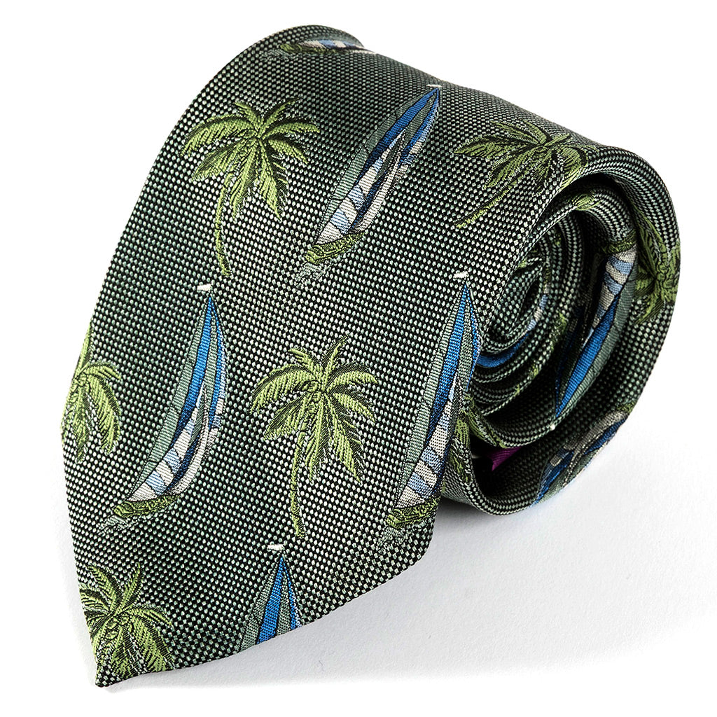 Blue & Green Sailboat Wide Silk Tie 9cm