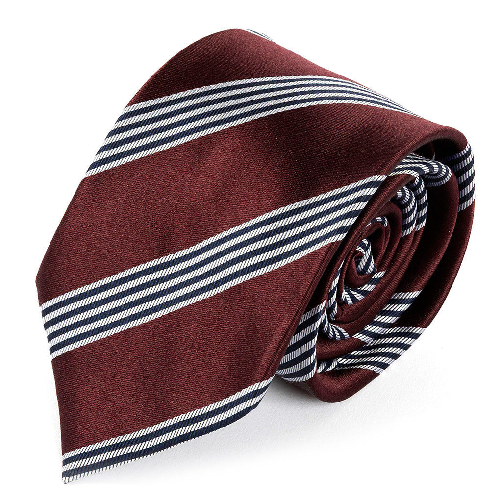 Burgundy Red & Silver Striped Silk Tie 8cm