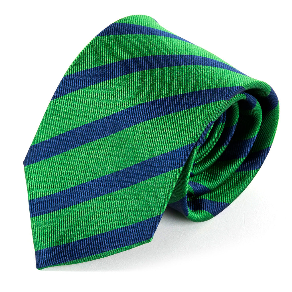 Green & Navy Blue Striped Silk Tie 8cm