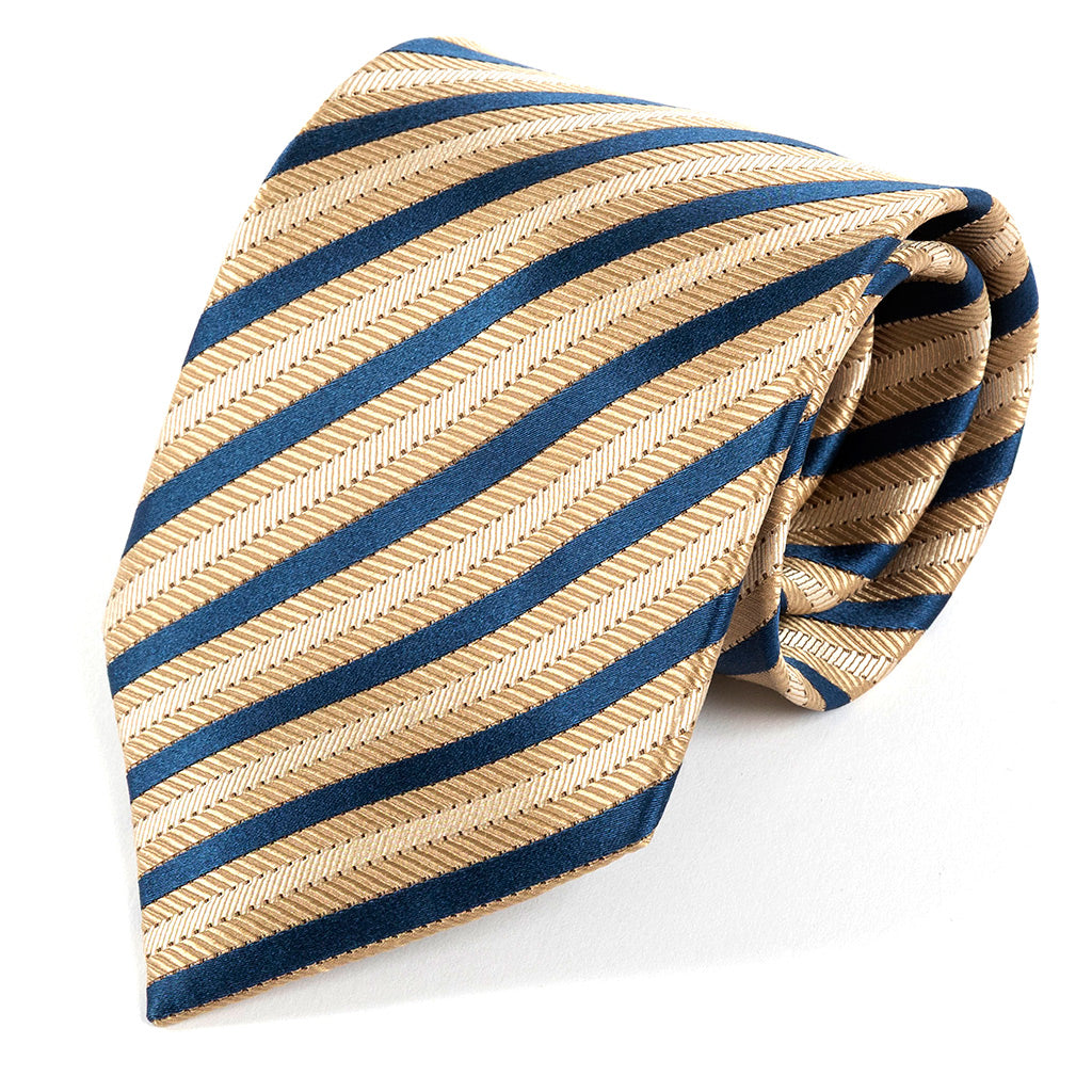 Light Brown & Blue Striped Wide Silk Tie 9.5cm
