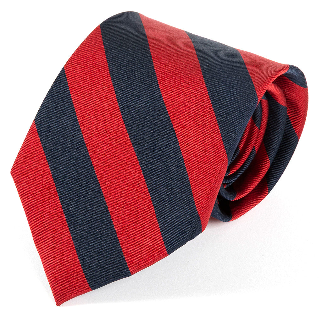 Red & Blue Thick Striped Wide Silk Tie