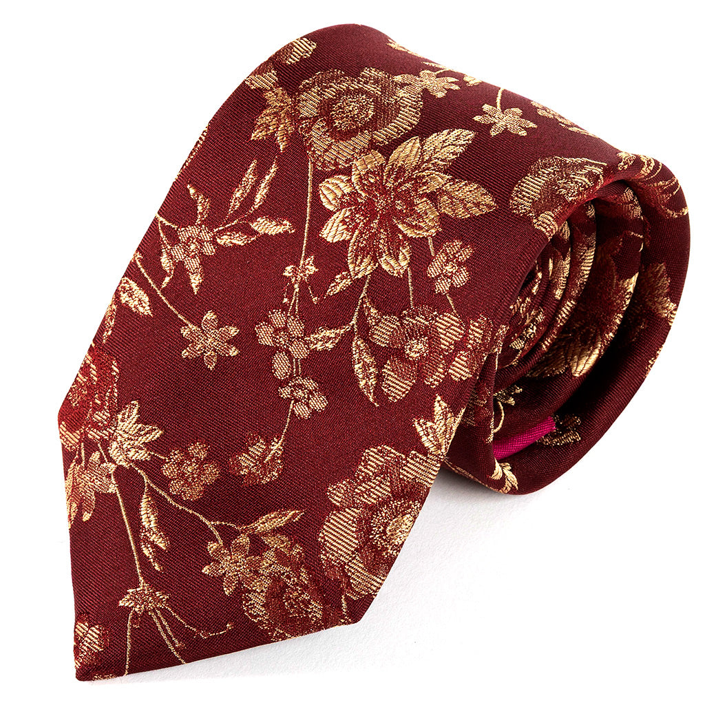Red & Cream Floral Silk Tie 7.5cm